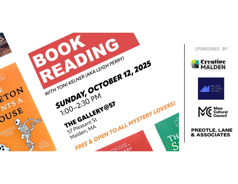 Malden readers are in for a treat this fall when local author Toni L.P. Kelner, also known by her pen name Leigh Perry, hosts a lively book reading at The Gallery@57 on Sunday, October 12, 2025, from 1:00–2:30 p.m.
